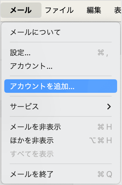 - メールソフトを起動します。画面上部の「メール」から「アカウントを追加」をクリックします。