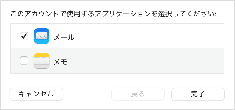 - メールにチェックが入っていることを確認し、「完了」ボタンをクリックします。これで設定が完了です。